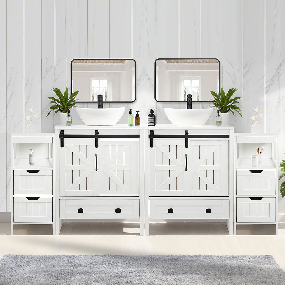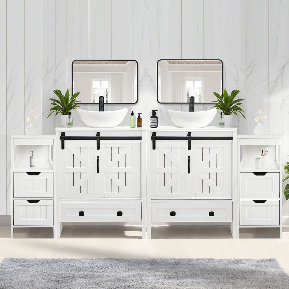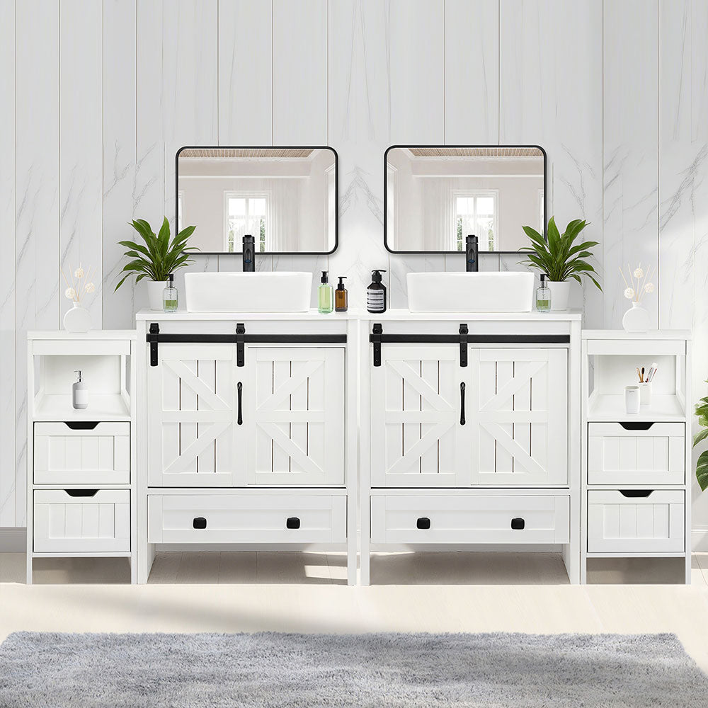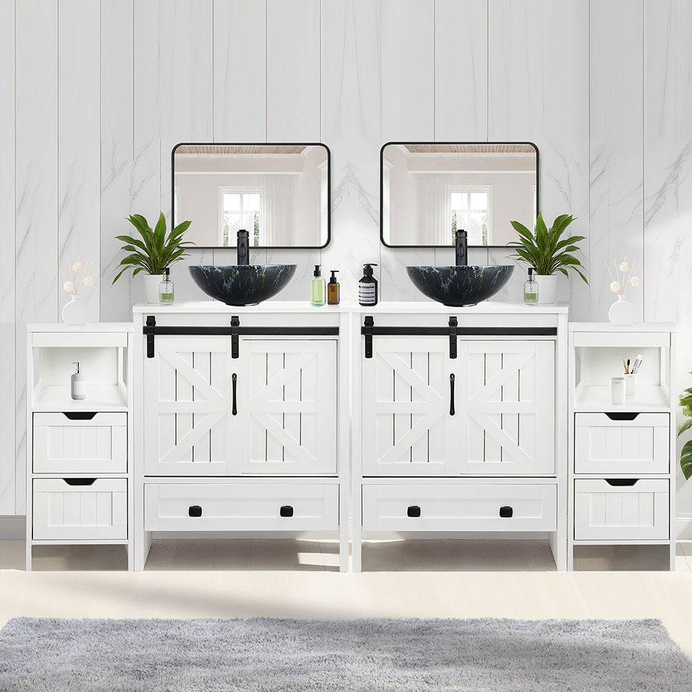 Sigsyl 72 Inch Double Vessel Sink Vanity | with 2 Side Floor Cabinets & Faucets