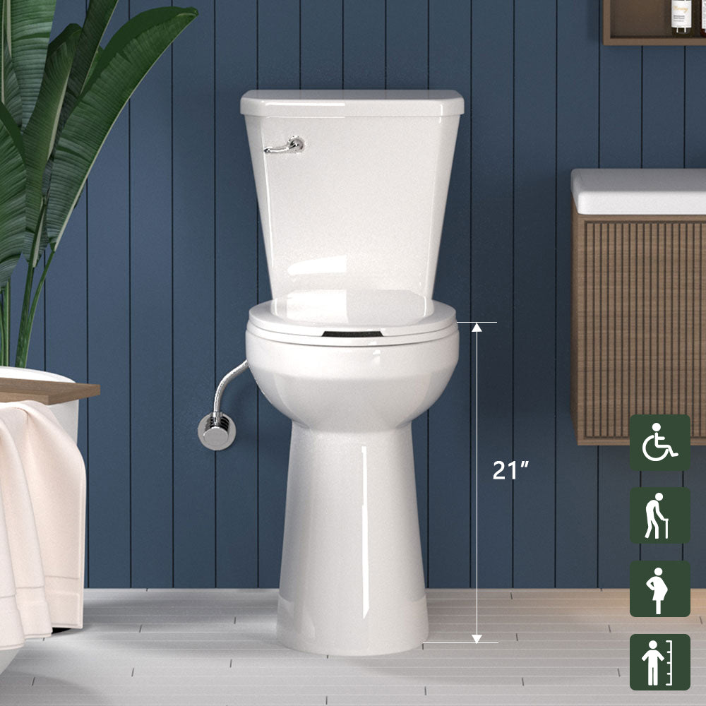 ELEMAZ 21-inch seat height toilet addresses comfort issues for tall, elderly, and disabled users, providing comfortable living. This Toilet 12-inch rough-in fits most American bathrooms and is easy to install. The siphon flush provides strong performance while saving water.