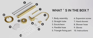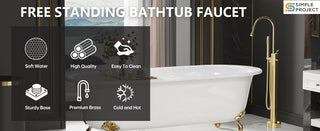 Elevate your bathroom with SpaSyra stunning freestanding tub faucet, featuring a brushed brass finish that adds a touch of sophistication. With durable full-metal construction and high-flow performance, it ensures both lasting quality and effortless elegance. Enjoy precise temperature control and versatile use with the swivel spout and hand shower — turning your bath into a luxurious escape.