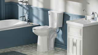 Left-sided chrome handle offers effective water conservation with a 1.28 gallons per flush, balancing performance and sustainability.