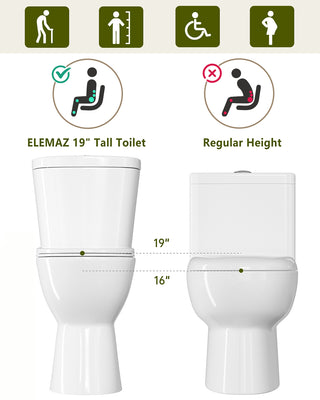 - 19" Comfort Seat Height Tall Toilets for Senior